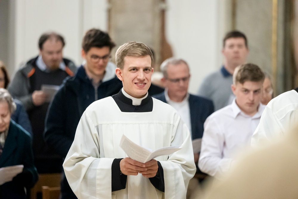 Die Admissio ist ein bedeutender Schritt auf dem Weg zur Weihe. In einer feierlichen Liturgie wird der Kandidat offiziell in die letzte Phase der Vorbereitung auf das Weihesakrament aufgenommen. Mit diesem Akt bekennt der Kandidat öffentlich seine Bereitschaft, den Dienst in der Kirche anzunehmen und seinen Weg der Berufung weiterzugehen. Diese Feier drückt die Anerkennung der Kirche aus und stärkt die Verbindung zwischen dem Kandidaten und der Gemeinschaft. Durch Gebet, Segen und Zuspruch wird der Kandidat auf seinem weiteren geistlichen Weg begleitet und ermutigt. Unter die Weihekandidaten aufgenommen wurden die Seminaristen Florian Gründker und Constantin Mucha. Wir waren mit der Kamera dabei.